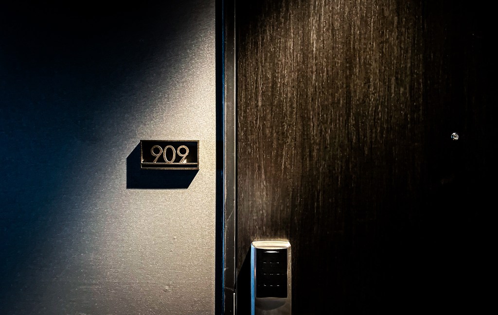 來到9樓,我的房間就在電梯出來的第一間,當出電梯時也很特別,前方仍是個置物櫃,不過這是放置浴巾與毛巾的置物櫃,也是供房客替換使用的。好的,敲敲門再進房門,沒想到我現在也習慣了,迷信了這個動作。