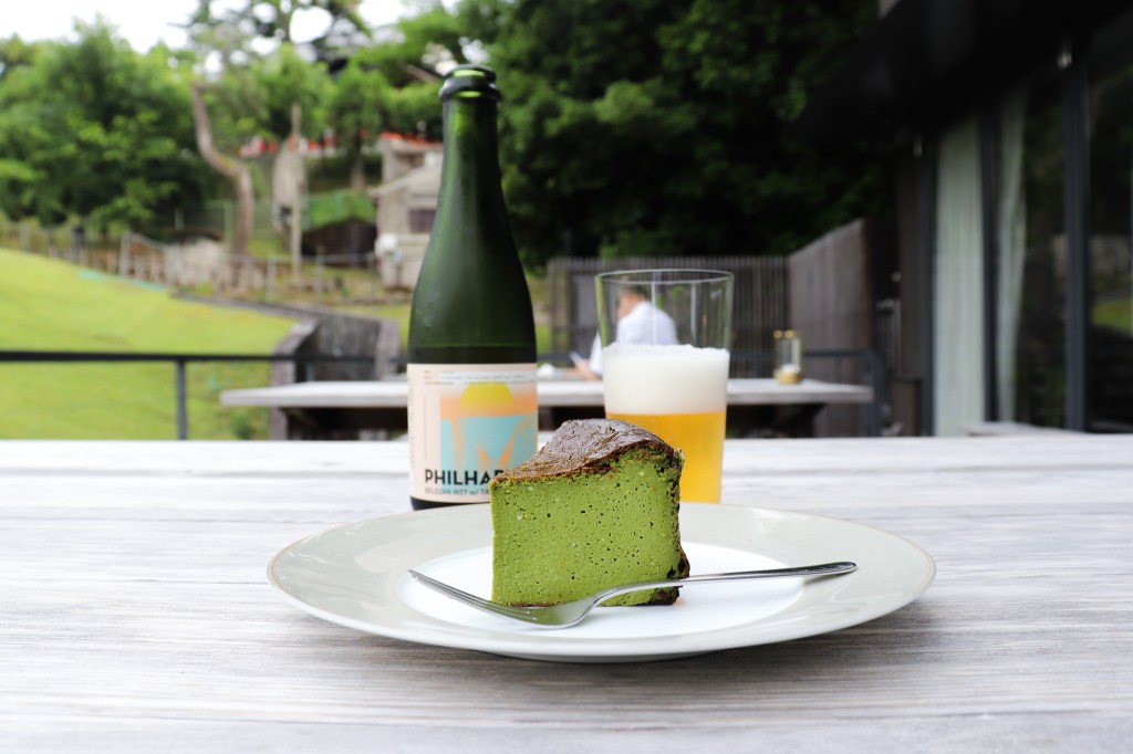 我看了一下菜單,思考了一會兒,好的,我決定選擇菜單上的飲品「クラフトビール 奈良醸造ボトルCraft Beer 375ML Bottle by NARA」奈良在地的精釀啤酒,以及一款「大和茶バスクチーズケーキ」大和茶巴斯克芝士蛋糕作為下午茶,享受旅宿下午的悠哉時光。
