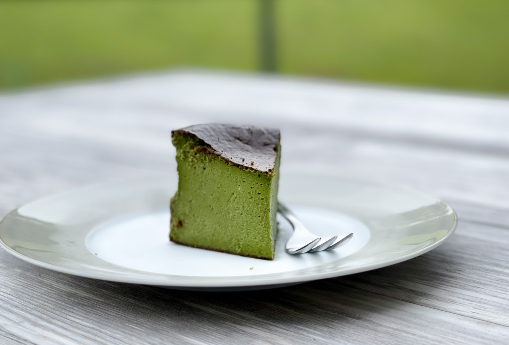 但是沒想到這塊抹茶巴斯克乳酪充滿的迷人美味的乳酪滋味以及均衡剛好的抹茶味與香氣。