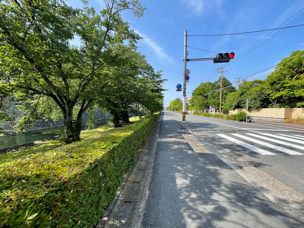 接著經過下一個彎道,這條外圍道路是美福通,而裡的道路則相對的寬闊,我感覺二条這塊區域比較偏向郊區,相對人口沒那麼多,不過運動跑步的人似乎也都是當地人居多。