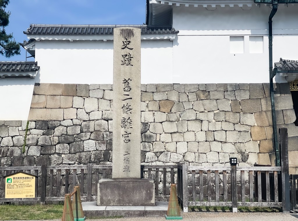 當再繼續前行時,間的一處石碑,上頭寫著「平安京跡 神泉苑 東端線」,經查閱後原來是指為日本平安時代天皇的皇居,由於平安宮是西元794年所建,在13世紀時1227年廢棄,部分被於二条城下,而這塊碑所指的是平安宮遺跡的神泉苑也是禁苑,當時用作為祈雨的聖地。在1990年至1990年建造地鐵東西線時挖掘到,經調查確認這是平安京建造時神泉苑的東線,而西線的位置則在剛剛經過的西南隅櫓。