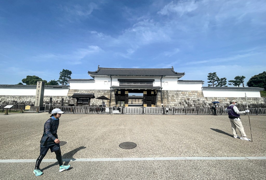 好的,跑個步也能串連日本歷史,再深入研究平安時代,也會中國史會有所串聯。好的,我繼續往前跑,就經過剛至二条城的東南隅櫓,所以當回到東大手門前,此時第一圈概約1.6公里左右吧!!