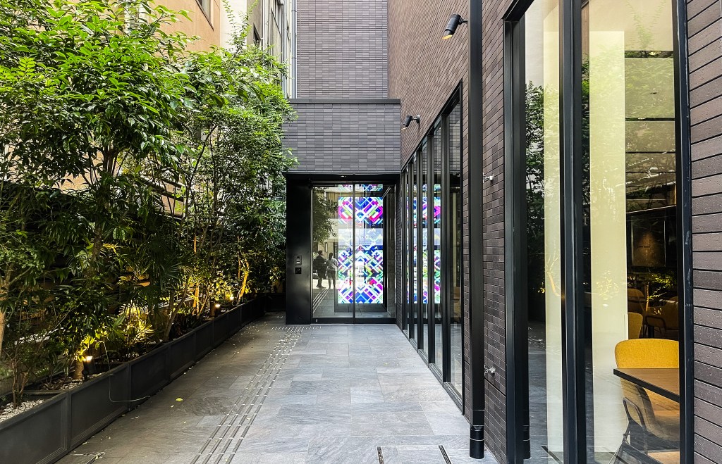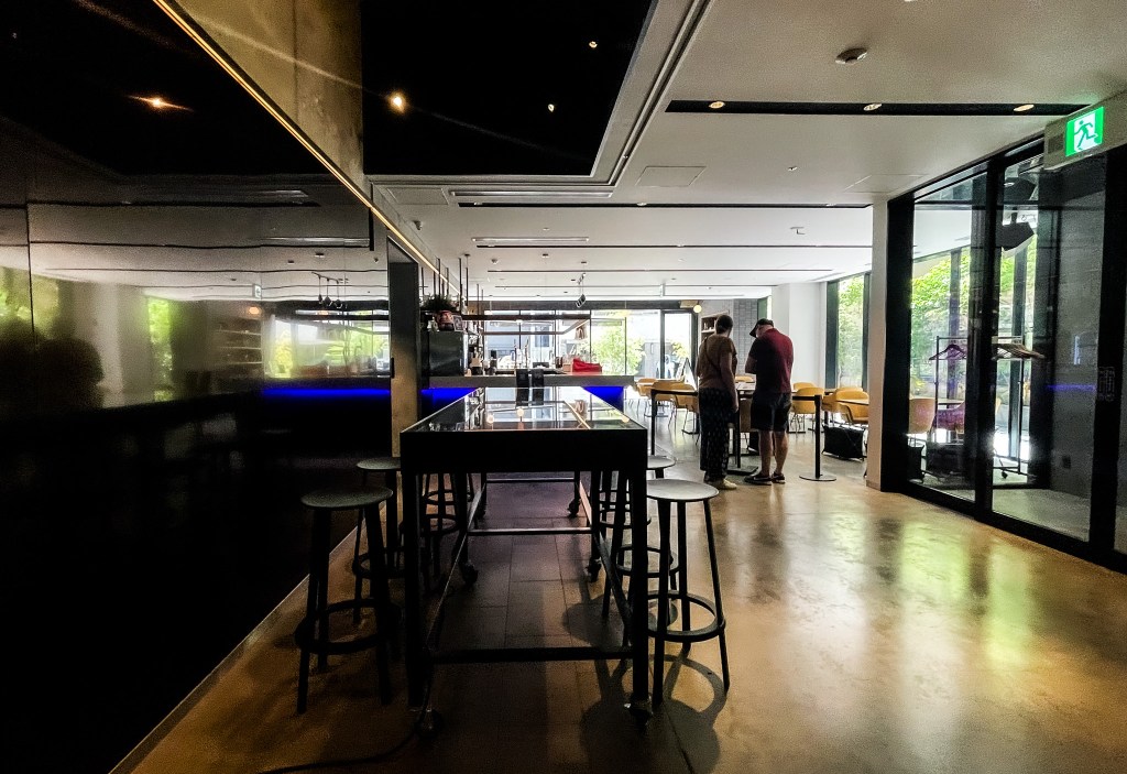 入口在酒店左側,進入這短暫的小徑,自動門將會打開,其辦理住宿的地方並不在一樓,一樓是餐廳以及休閒的區域。我搭乘電梯上二樓,一處設計頗具時尚感的區域,在一旁的中島平台便是辦理住宿的地方。