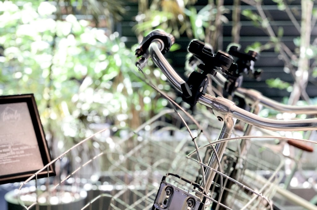 一樓也有戶外區域可以坐在這裡悠閒的喝飲品,而這裡也有單車租借的服務。