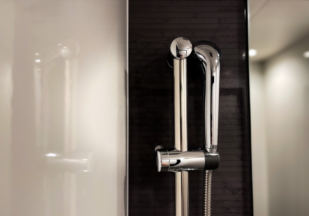 長鏡正對面的暗門則是淋浴間,淋浴間裡提供了洗沐浴乳還有潤髮乳,空間雖然不大但一個人也非太壅擠。