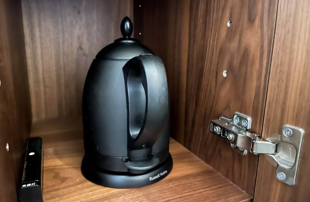 喔喔,對了忘記說了,在沙發旁的櫃子下方有小型冰箱,也提供了礦泉水使用,此外一旁的小型櫃裡也有睡衣以及快煮熱水壺提供使用。