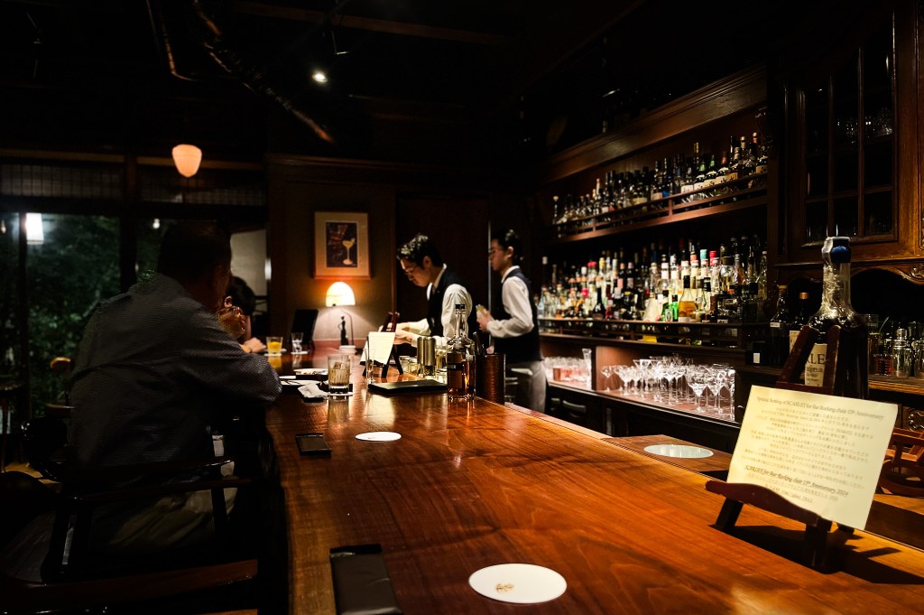 Bar Rocking Chair酒吧在京都安靜的小巷內,看看地圖,等等回飯店只需要直線前進,如此對我來說相當方便。所在建築是一棟建了近百年的連棟日式建築,進入酒吧會先走過一段小庭院,有著暖色燈光,再推進內門即是一道與吧台間隔的隔間,此時便有服務人員帶位入座。
