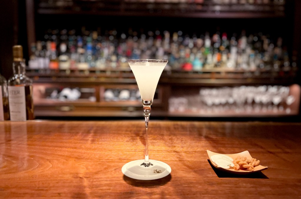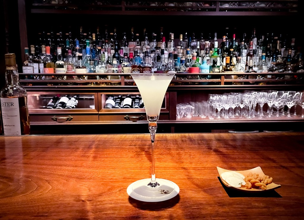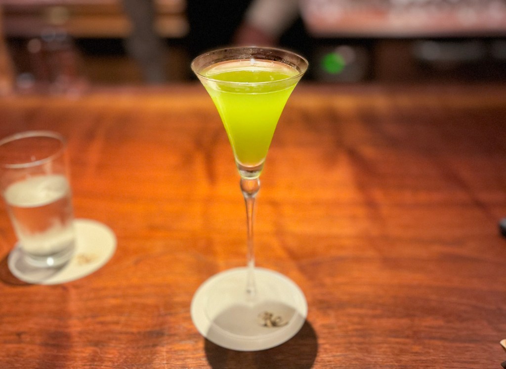我選擇了一杯「Kyoto Martini」(KINOBI Kyoto Gin, Sen-cha Green Tea, Dry Vermouth, Orange peel, Refined Japanese Sugar)。