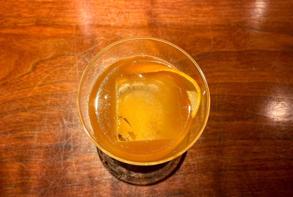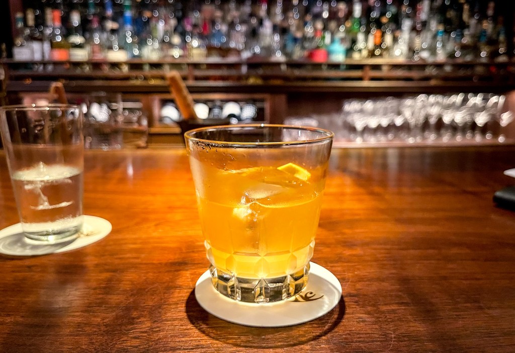 在選擇最後一杯吧!!其時我看見適合觀光客的特別酒單中有一杯「JAPANESE OLD FASHIONED」(Japanese Whisky, Orange, 2 types of Bitters, Brown Sugar),不過似乎有柳橙汁,因此好奇試試。