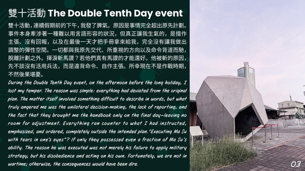 2025.10.10(Fri.) 天氣:晴 氣溫:29 地點:臺灣 臺南市-中西區。